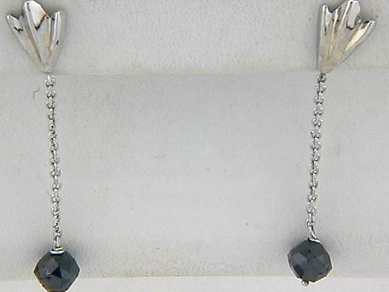 14K WHITE GOLD HAND MADE EARRING WITH 2.15CT CRISTAL CUT BLACK DIAMOND .