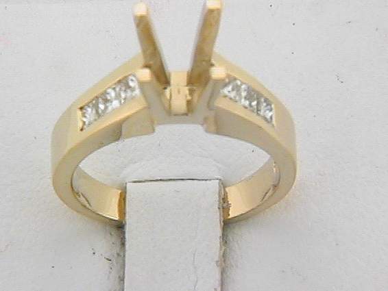14K YELLOW GOLD RING WITH .70CT PRINCESS CUT DIAMOND SET IN CHANNEL SETTING.
