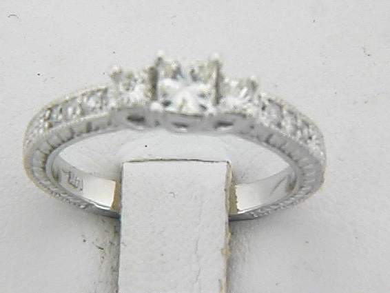 14K WHITE GOLD RING WITH .15CT ROUND SHAPE DIAMOND, .75CT PRINCESS CUT DIAMOND SET IN PRONGS AND SETTING.