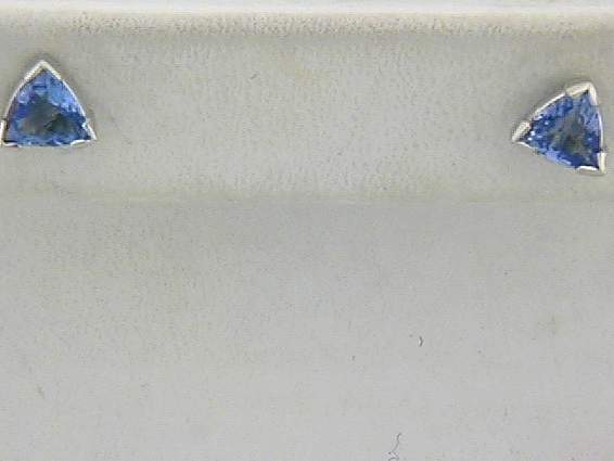 14K WHITE GOLD EARRING WITH .85CT TRIANGLE SHAPE TANZANITE SET IN BEZEL SETTING.