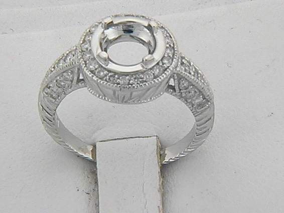 14K WHITE GOLD RING WITH .45CT ROUND SHAPE DIAMOND SET IN PAVE SETTING.
