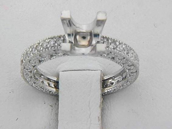 14K WHITE GOLD RING WITH .50CT ROUND SHAPE DIAMOND SET IN PAVE SETTING.