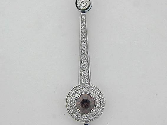14K WHITE GOLD PENDANT WITH 1.20CT ROUND SHAPE DIAMOND SET IN PAVE SETTING,CENTER OF .60CT ROUND SHAPE CHAMPAIGNE DIAMOND SET IN PRONGS SETTING.