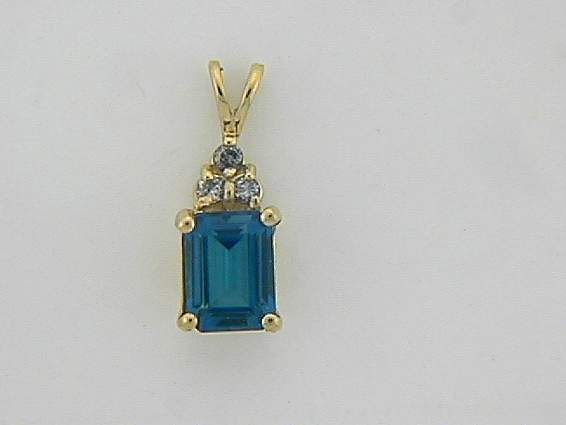 14K YELLOW GOLD PENDANT WITH .06CT ROUND SHAPE DIAMOND , 1.19CT EMERALD CUT BLUE TOPAZ SET IN PRONGS SETTING.