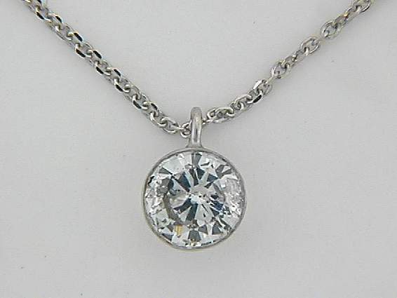 14K WHITE GOLD NECKLACE WITH 1CT ROUND SHAPE DIAMOND SET IN BEZEL SETTING.