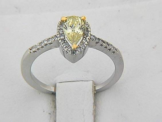 14K WHITE GOLD RING WITH .20CT ROUND SHAPE DIAMOND SET IN PAVE SETTING, CENTER OF .54CT PEAR SHAPE DIAMOND SET IN PRONGS SETTING.