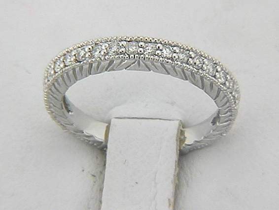 14K WHITE GOLD BAND WITH .30CT ROUND SHAPE DIAMOND SET IN PAVE SETTING.