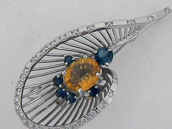 14K WHITE GOLD PENDANT WITH .75CT ROUND SHAPE DIAMOND SET IN PAVE SETTING , 1.15CT ROUND SHAPE SAPPHIRE,3.30CT OVAL SHAPE YELLOW TOPAZ,SET IN PRONGS SETTING.