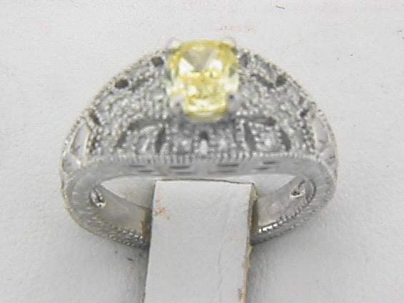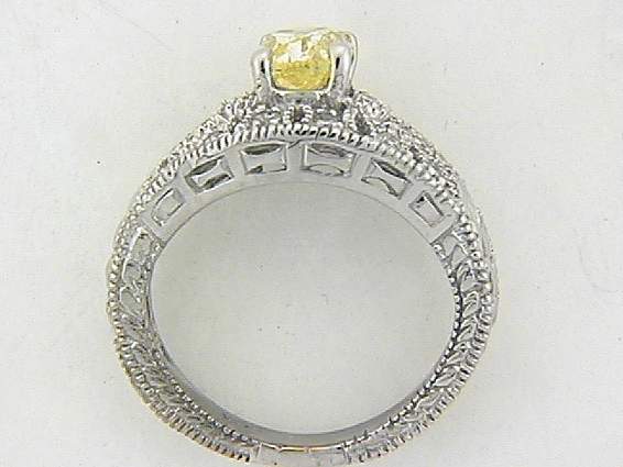 14K WHITE GOLD RING WITH .40CT ROUND SHAPE DIAMOND SET IN PAVE SETTING, CENTER OF 1.26CT OVAL SHAPE FANCY YELLOW DIAMOND SET IN PRONGS SETTING.