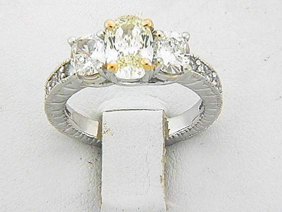 14K WHITE GOLD RING WITH .20CT ROUND SHAPE DIAMOND SET IN PAVE SETTING. (2PC) .95CT OVAL SHAPE DIAMOND, AND CENTER OF 1.50CT FANCY YELLOW OVAL SHAPE DIAMOND SET IN PRONGES SETTING.