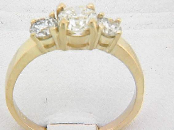 14K YELLOW GOLD RING WITH (2PC0 .67ctSI,GH ROUND SHAPE DIAMOND , CENTER OF 1.02CT SI3,G ROUND SHAPE DIAMOND TOTAL OF 1.68CT DIAMOND SET IN FOUR PRONGS SETTING.