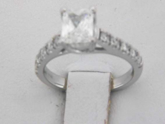 14K WHITE GOLD RING WITH .30CT ROUND SHAPE DIAMOND SET IN PAVE SETTING, CENTER OF .88CT PRINCESS CUT DIAMOND SET IN FOUR PRONGS SETTING.