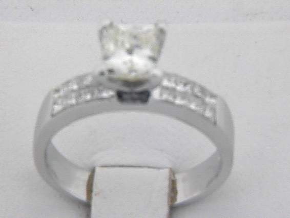 18K WHITE GOLD RING WITH .60CT PRINCESS CUT DIAMOND SET IN INVISIBLE SETTING, CENTER OF 1.30CT SI,I J PRINCESS CUT DIAMOND SET IN PRONGS SETTING. TOTAL OF 1.90CT DIAMOND.