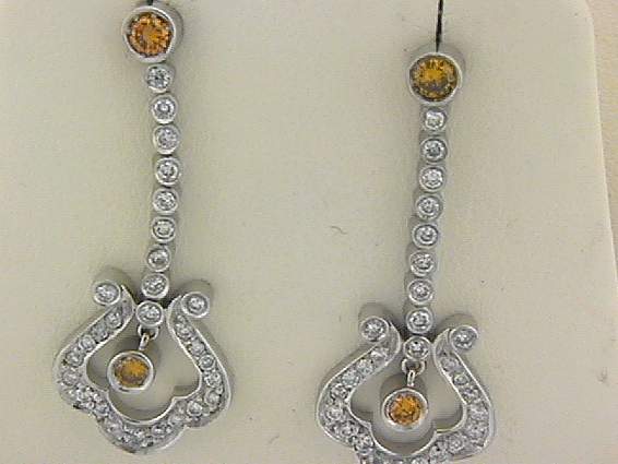 18K WHITE GOLD EARRING WITH .90CT ROUND SHAPE DIAMOND SET IN PAVE SETTING, AND .45CT FANCY YELLOW ROUND SHAPE DIAMOND SET IN BEZEL SETTING.