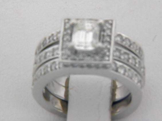 14K WHITE GOLD ENGAGEMENT SET WITH 1.40CT ROUND SHAPE DIAMOND SET IN PAVE SETTING. CENTER OF 1.01CT EMERALD CUT DIAMOND SET IN PRONGS SETTING.
