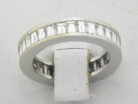 14K WHITE GOLD ETERNITY RING WITH 3.40CT EMERALD CUT DIAMOND SET IN CHANNEL SETTING.