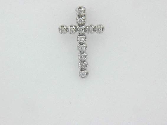 14K WHITE GOLD CROSS PENDANT WITH .12CT ROUND SHAPE DIAMOND SET IN PRONGS SETTING.