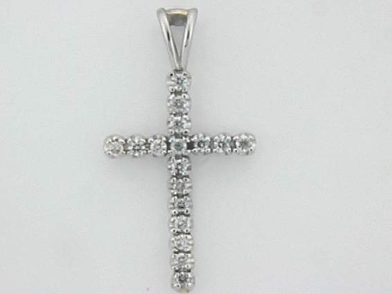 14K WHITE GOLD CROSS PENDANT WITH .24CT ROUND SHAPE DIAMOND SET IN PRONGS SETTING.