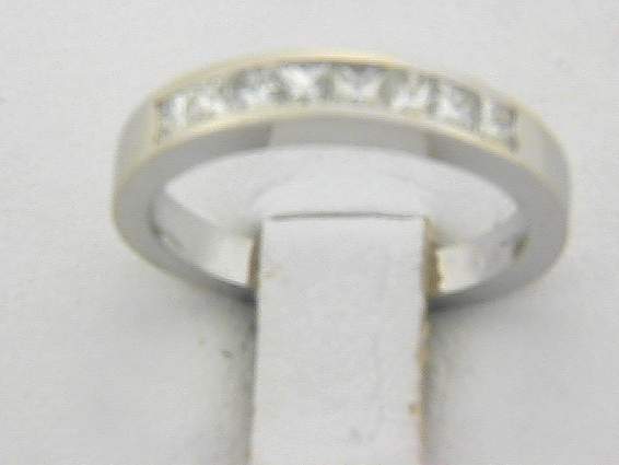 14K WHITE GOLD RING WITH .65CT PRINCESS CUT DIAMOND SET IN CHANNEL SETTING.