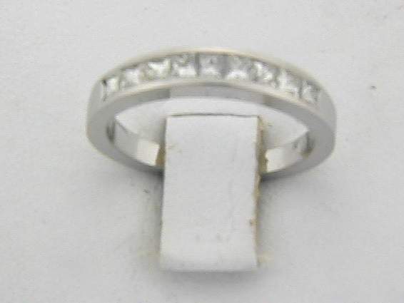 14K WHITE GOLD RING WITH .70CT PRINCESS CUT DIAMOND SET IN CHANNEL SETTING.