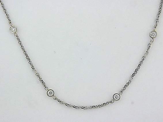 14K WHITE GOLD NECKLACE WITH (11PC) 1CT ROUND SHAPE DIAMOND SET IN BEZEL SETTING.