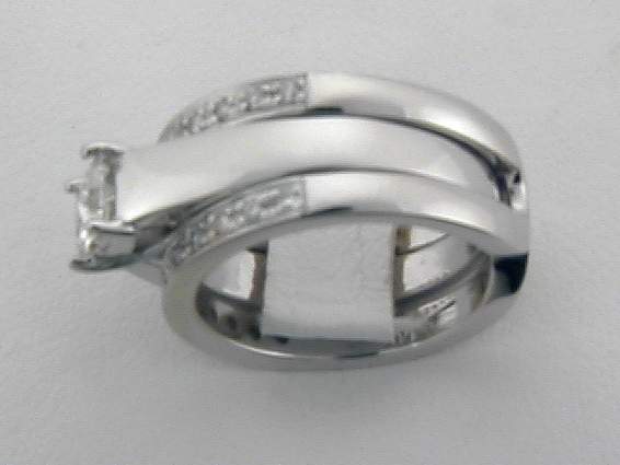 14k WHITE GOLD ENGAGEMENT SET WITH .40CT ROUND SHAPE DIAMOND SET IN PAVE SETTING,CENTER OF .71CT PRINCESS CUT DIAMOND SET IN FOUR PRONGS SETTING.TOTAL OF 1.11CT DIAMOND.