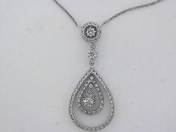14K WHITE GOLD NECKLACE WITH.90CT ROUND SHAPE DIAMOND SET IN PAVE SETTING, AND .55CT PEAR SHAPE DIAMOND SET IN PRONGS SETTING. TOTAL OF 1.40CT DIAMOND.