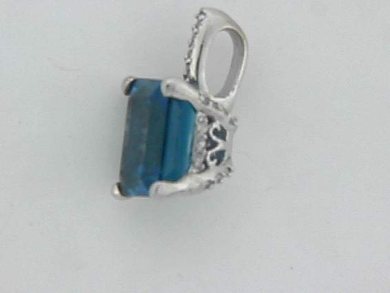 14K WHITE GOLD PENDANT WITH .15CT ROUND SHAPE DIAMOND SET IN PAVE SETTING WITH CENTER OF 4.15CT EMERALD CUT BLUE TOPAZ SET IN FOUR PRONGS SETTING.