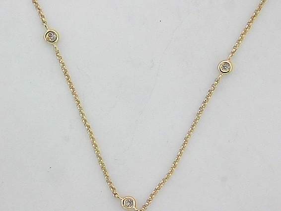 14K YELLOW GOLD NECKLACE WITH .25CT ROUND SHAPE DIAMOND SET IN BEZEL SETTING.