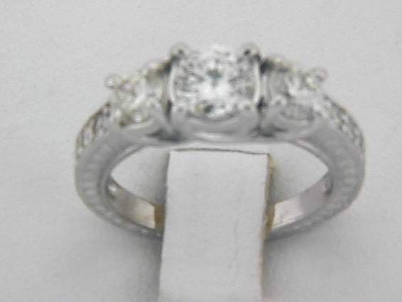 14K WHITE GOLD RING WITH 1.05CT ROUND SHAPE DIAMOND SET IN PAVE AND PRONGS SETTING, CENTER OF 1CT ROUND SHAPE DIAMOND SET IN FOUR PRONGS SETTING.