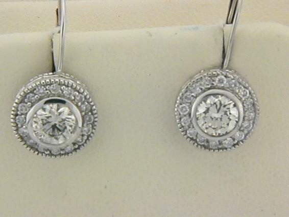 14K WHITE GOLD EARRING WITH TOTAL OF 2.10 CT ROUND SHAPE DIAMOND SET IN PAVE AND BEZEL SETTING.