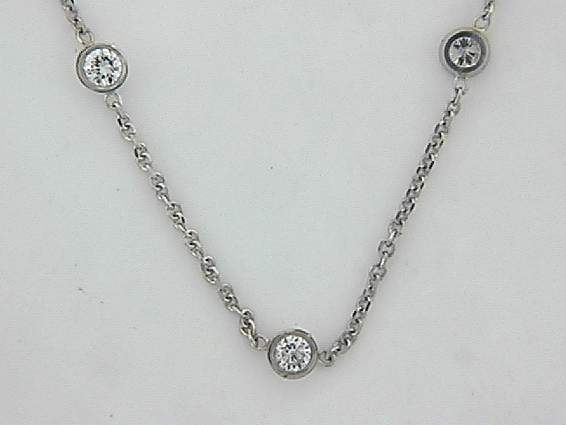 14K WHITE GOLD NECKLACE WITH .75CT ROUND SHAPE DIAMONDS SET IN BEZEL SETTING.