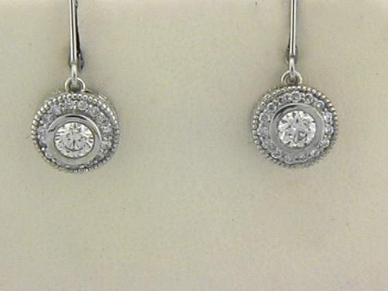 14K WHITE GOLD EARRING WITH .80CT ROUND SHAPE DIAMOND SET IN PAVE AND BEZEL SETTING.