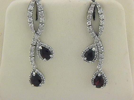 14K WHITE GOLD EARRING WITH .67CT ROUND DIAMONDS SET IN PAVE SETTING AND 1.87CT PEAR SHAPE GARNET SET IN PRONGS SETTING