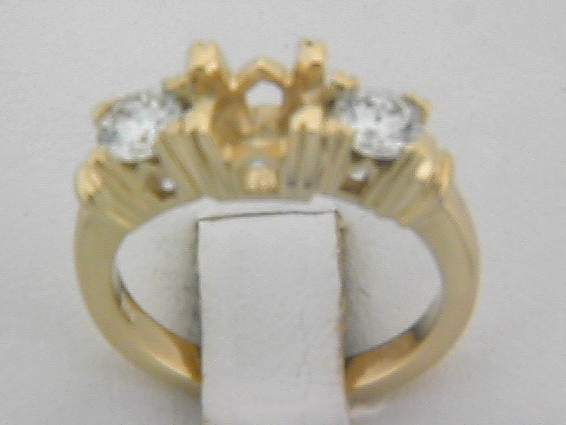 14K YELLOW GOLD RING WITH (2PC) 1CT ROUND SHAPE DIAMOND SET IN FOUR PRONGS SETTING.