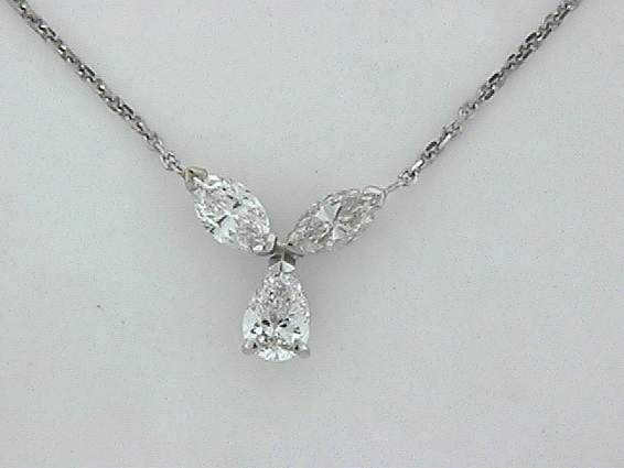 14K WHITE GOLD NECKLACE WITH .90CT MARQUISE, .55CT PEAR SHAPE DIAMOND SET IN PRONGS SETTING.