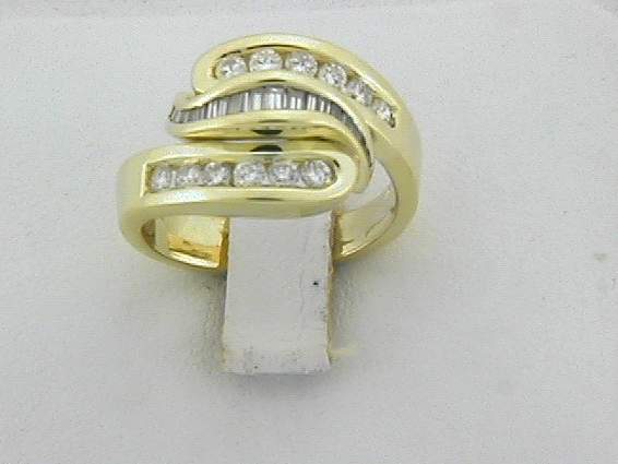 18K YELLOW GOLD RING WITH TOTAL OF 1.20CT ROUND AND BAGUETTE DIAMOND SET IN CHANNEL SETTING.