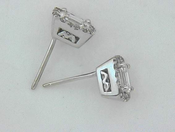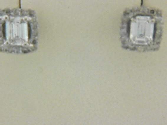 14K WHITE GOLD EARRING WITH .50CT ROUND SHAPE DIAMOND SET IN PAVE SETTING AND CENTER OF 1.0CT EMERALD CUT DIAMONDS SET IN FOUR PRONGS SETTING, TOTAL OF 1.50CT ROUND AND EMERALD DIAMONDS.
