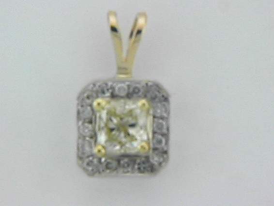 14K WHITE AND YELLOW GOLD PENDANT WITH .30CT ROUND SHAPE DIAMOND SET IN PAVE SETTING, CENTER OF 1.01CT FANCY YELLOW RADIANT CUT DIAMOND SET IN FOUR PRONGS SETTING.