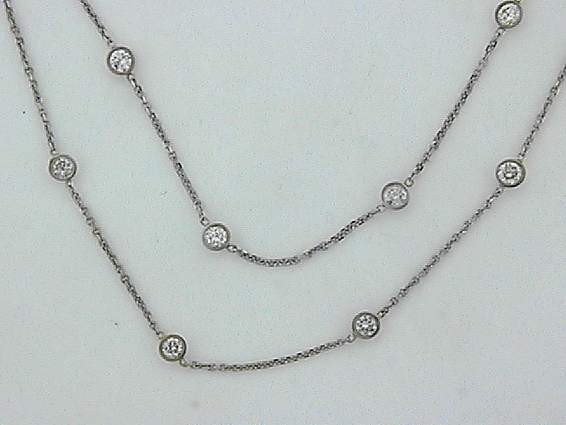14K WHITE GOLD (40 INCHES) NECKLACE WITH 4.30CT ROUND SHAPE DIAMOND SET IN BEZEL SETTING.