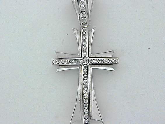 14K WHITE GOLD CROSS PENDANT WITH 1.25CT ROUND SHAPE DIAMOND SET IN CHANNEL SETTING.