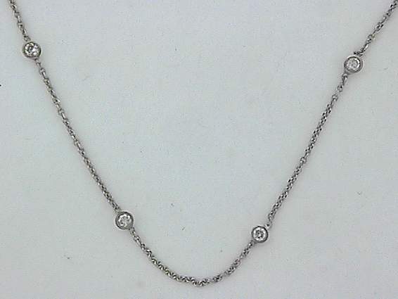 14K WHITE GOLD NECKLACE WITH .60CT ROUND SHAPE DIAMOND SET IN BEZEL SETTING.