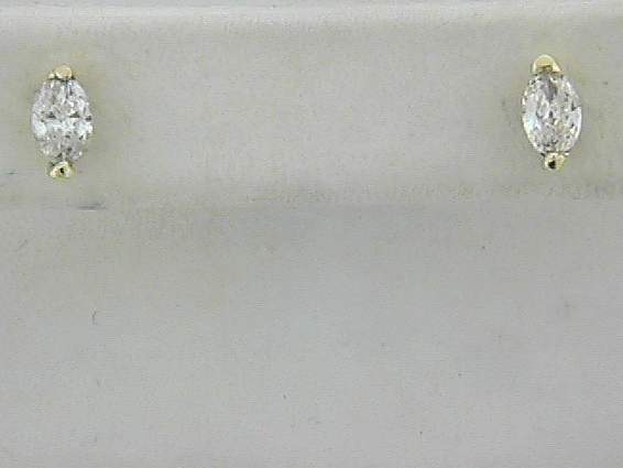 14K YELLOW GOLD STUD EARRING WITH .85CT MARQUISE DIAMOND SET IN PRONGS SETTING.
