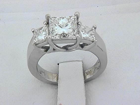 14K WHITE GOLD RING WITH (2PC) 1.05CT PRINCESS CUT DIAMOND CENTER OF 2.56CT PRINCESS CUT DIAMOND, SET IN FOUR PRONGS SETTING.