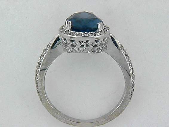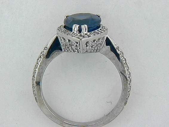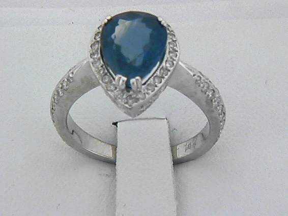 14K WHITE GOLD HANDMADE RING WITH .80CT ROUND SHAPE DIAMOND SET IN PAVE SETTING ,CENTER OF 4.16CT PEAR SHAPE CEYLON SAPPHIRE SET IN PRONGS SETTING.