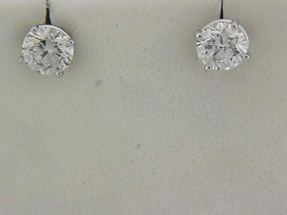 14K WHITE GOLD STUD EARRING WITH 2.05CT ROUND SHAPE DIAMOND SET IN FOUR PRONGS SETTING.