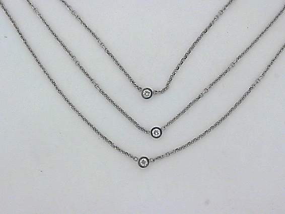 14K WHITE GOLD NECKLACE WITH .18CT ROUND SHAPE DIAMOND SET IN BEZEL SETTING.
