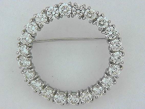 PLATINUM BROOCH WITH 5.10CT ROUND SHAPE DIAMOND SET IN FOUR PRONGS SETTING.