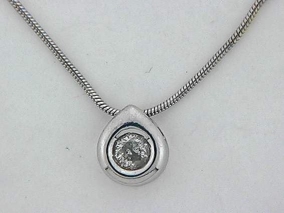14K WHITE GOLD PENDANT WITH .30CT ROUND SHAPE DIAMOND SET IN BEZEL SETTING.