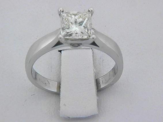 14k WHITE GOLD LADIES RING WITH 1.50CT PRINCESS-CUT DIAMOND SET IN PRONGS SETTING.